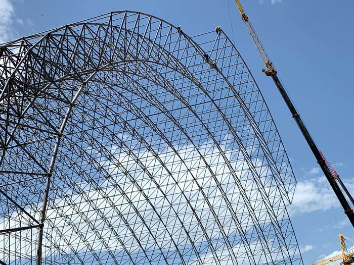 (2)网架加工前应对现场尺寸进行复测,确认无误后方可进行加工、安装;网架制作、运输、安装应遵守《空间网格结构技术规程》JGJ7-2010、《钢网架华蓥螺栓球节点》JG/T 10-2009、《钢网架华蓥螺栓球节点用高强度螺栓》 GB/T 16939-2016、《华蓥钢结构华蓥工程华蓥施工规范》 GB50755-2012、《华蓥钢结构华蓥工程华蓥施工质量验收标准》 GB50205-2020。